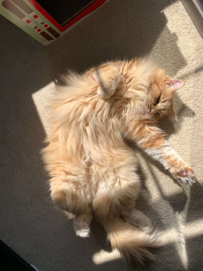 Even in the depths of grief, I can see goodness and light purely in her face. She’ll flop on her back, rub on our legs, want to play (constantly), jump around, purr…all the things a cat does. At least, a great cat like her does! And it lightens the toll on my spirit and lifts me up, even if ever so slightly. She’s pure goodness.